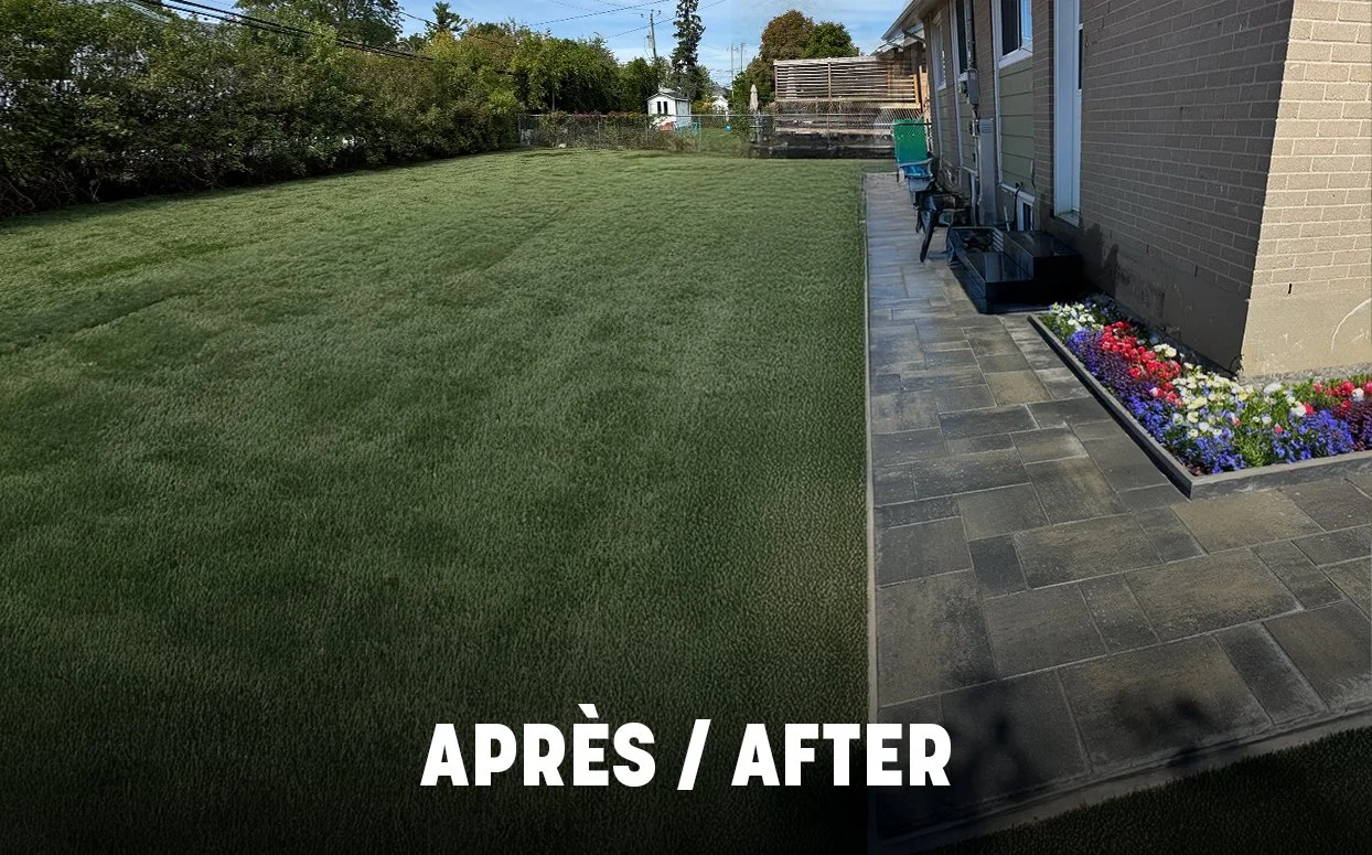 Pelouse Voltage specializes in lush sod installation and custom garden beds, crafting vibrant, welcoming landscapes. We also offer expert patio work to complete your outdoor space.